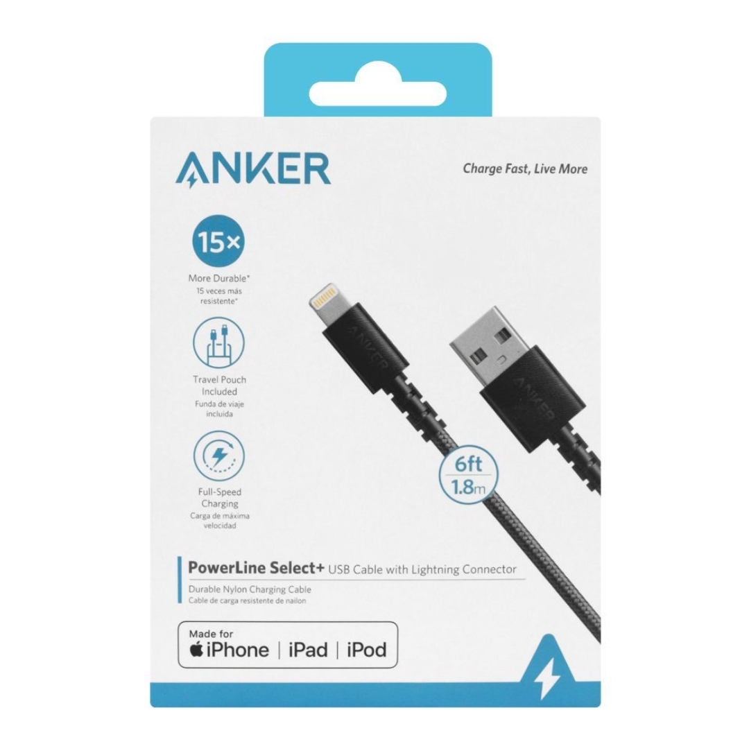 Anker PowerLine Select+ 6ft/1.8m USB Cable with Lightning Connector | A8013