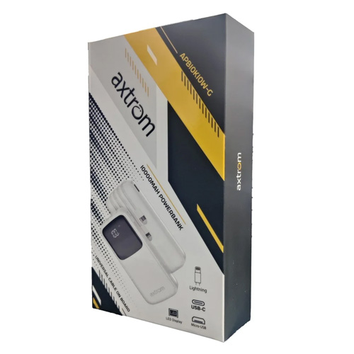 پاوربانک Axtrom APB10K10W-G با باتری ۱۰,۰۰۰ میلیآمپرساعتی، امکان شارژ کافی برای دستگاههای هوشمند را فراهم میکند. ویژگی منحصربهفرد این محصول، سیستم "Mounted Cable" یا کابلهای همراه داخلی آن است که آن را از سایر پاوربانکهای موجود در بازار متمایز میکند. این پاوربانک دارای سه کابل داخلی کاربردی شامل Micro-USB، Lightning و USB-C است که امکان شارژ همزمان چندین دستگاه را فراهم میکند. همچنین، یک کابل USB مجزا برای شارژ خود پاوربانک در نظر گرفته شده است. علاوه بر این، نمایشگر تکرنگ روی بدنه میزان شارژ باقیمانده پاوربانک را نشان میدهد و تجربهای کاربری برتر را ارائه میدهد