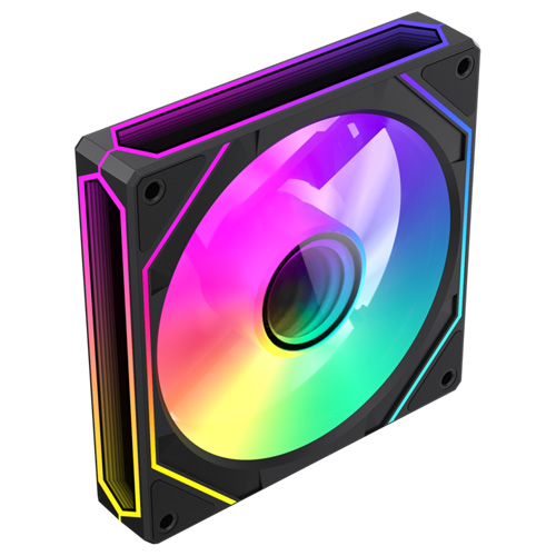 - نورپردازی ARGB آینه بینهایت سهطرفه روی فریم فن: افکت Infinity Space روی سه ضلع فن با طراحی هندسی آینهای برای جلوه نوری عمیق، یکپارچه و چشمنواز