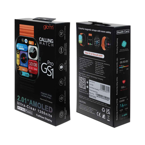 ساعت هوشمند گلوریمی مدل GS1 Pro با صفحه نمایش مربعی شکل تولید شده است که علاوه بر تمام رنگی بودن آن، می توانیم به ویژگی تمام لمسی بودن ـش هم اشاره ای داشته باشیم. نمایشگر در نظر گرفته شده برای این ساعت، ابعادی نظیر 2.01 اینچی دارد که از نوع AMOLED می باشد. میزان روشنایی این نمایشگر را 1200 نیت تخمین زده اند که می توانید از آن به راحتی زیر نور خورشید استفاده کنید.رزولوشن نمایشگر ساعت GS1 Pro طبق گفته سازنده 410 در 502 پیکسل است و ویژگی جالب ترش، پشتیبانی از قابلیت همیشه روشن می باشد. بر روی این نمایشگر نیز یک شیشه 2.5 بعدی با سختی بالا را در نظر گرفته اند که یکی از عوامل جذابیت ساعت فوق محسوب می شود. بدنه ساعت از فولاد ضد زنگ ساخته شده و در سمت راست، شاهد وجود یک عدد دکمه مجیک باتن خواهید بود.با کمک این دکمه می توانید به راحتی، میان منوهای ساعت گشت و گذار کنید. بندهایی از جنس سیلیکونی برای این ساعت تعبیه شده که با توجه به تنوع رنگی که در آن وجود دارد، می توانید به راحتی با هر نوع پوششی، آن ها را ست کرده و از ساعت مورد نظر استفاده نمایید.