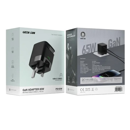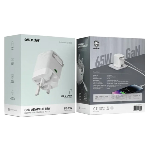 Green Lion GL-GAN2 Gan Adapter 65W Retractable Cable