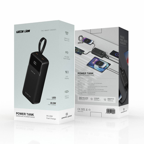 Green Lion GL-PBT30 Power Tank Power Bank 30000mAh PD 22.5W with Fast Charging Cable