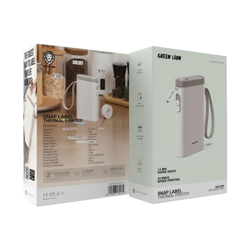 پرینتر حرارتی گرین یک راهکار جمعوجور و کارآمد برای آسانسازی فرایند برچسبگذاری است. بدنهی این دستگاه از جنس پلاستیک مقاوم ABS ساخته شده تا دوام طولانیمدت را تضمین کند. این پرینتر با داشتن باتری ۱۳۰۰ میلیآمپرساعتی، با یک بار شارژ کامل میتواند تا ۱۰۰۰ برچسب چاپ کند.با وضوح چاپ ۲۰۳ DPI و سرعت چاپ ۲۰ میلیمتر بر ثانیه، به سرعت برچسبهایی با کیفیت بالا و وضوح مناسب تولید میکند. این دستگاه با کاغذهای ۱۴ میلیمتری دارای فاصله (gap paper) سازگار است و از برچسبهای چسبنده با چسب قوی پشتیبانی میکند که باعث میشود برچسبها محکم در جای خود باقی بمانند.اتصال Bluetooth نسخه 5.1 امکان استفاده بیسیم آسان را فراهم کرده و از طریق درگاه شارژ Type-C تنها در ۴ ساعت به طور کامل شارژ میشود. همچنین وجود تیغه برش داخلی دقت بالایی در برش برچسبها ارائه میدهد و عمر هد چاپی تا ۵۰ کیلومتر باعث شده گزینهای مناسب برای استفاده طولانیمدت باشد. با بیش از ۱۶۰ قالب آماده طراحی برچسب، این پرینتر بهترین انتخاب برای منازل، دفاتر کاری و کسبوکارهایی است که به دنبال برچسبهای سفارشی و حرفهای هستند.