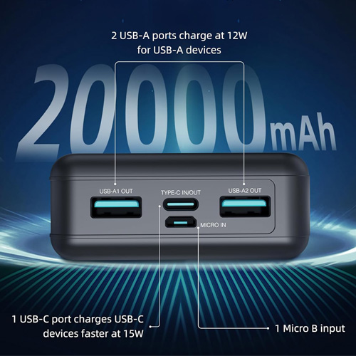 پاوربانک مدل RP-PB1216 شرکت RAVPower دارای باتری 20000 میلیآمپری است که قادر به شارژ مجموعه وسیعی از گوشیها , تبلتهای مختلف است. این محصول به انواع درگاههای مختلفی مجهز میباشد تا برای تامین نیازهای انواع کاربران مختلف مناسب باشد. پاوربانک RP-PB1216 به دو درگاه USB-A خروجی، یک درگاه Type-C ورودی و خروجی و یک درگاه Micro-USB ورودی مجهز است (درگاههای خروجی برای شارژ دستگاههای مورد نظر شما و درگاههای ورودی برای شارژ خود پاوربانک هستند). از طرفی دیگر، باتری 20 هزار میلیآمپری این محصول به شما اجازه میدهد بیش از 3 بار انواع گوشیهای هوشمند همانند iPhone 14 را شارژ کنید. در نهایت باید به این مسئله اشاره داشت که خروجی Type-C این محصول از شارژ سریع PD 15W پشتیبانی میکند.
