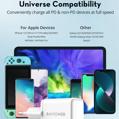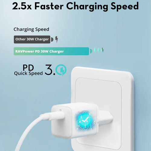 شارژر دیواری RP-PC169 به یک درگاه Type-C مجهز است. درگاه Type-C این محصول به فناوری Power Delivery برای شارژ سریع و امن دستگاههای شما با بالاترین بازده ممکن مجهز است. این محصول به فناوریهای محافظتی شرکت راوپاور برای محافظت از دستگاه شما در مقابل جریان و ورودی بیش از اندازه نیز مجهز میباشند. مجموع توان خروجی ۳0 واتی این محصول به همراه تطابقپذیری بینالمللی آن با انواع گوشیها و تبلتهای هوشمند منجر شده تا RP-PC169 به گزینه مطمئن و برتری برای انواع کاربران مختلف تبدیل شود.