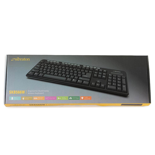 کیبورد سیبراتون مدل skb566w، بدون سیم و اتصال آن از نوع دانگل USB (2.4 گیگاهرتز) میباشد. این کیبورد دارای 104 کلید برای انجام فعالیتهای کامپیوتری است. همچنین کیبورد skb566w دارای 15 کلید میانبر به منظور انجام سریعتر کارهاست که عبارتند از Search, Next Page, Pre. Page, Music, Play/Pause, Pre Track, Next Track, Mute, Volume , Closure, Web Home, Calculator, My Computer. کیبورد سیبراتون مدل skb566w برای استفادههای روزمره مناسب میباشد و دارای محدوده عملیاتی 10 متر است. از دیگر ویژگیهای این محصول کمپانی سیبراتون طراحی کلیدها به گونهای که امکان تایپ کردن در مدت زمانی طولانی را فراهم می کند، دسترسی راحت به تمامی کلید های کاربردی، طراحی نرم و سایلنت کلید ها، بادوام و دارای کلید های مات میباشد.
