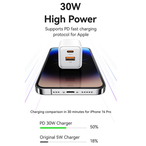 USAMS US-CC189 PD30W+QC3.0 A+C Dual-Port Mini Fast Charger